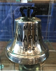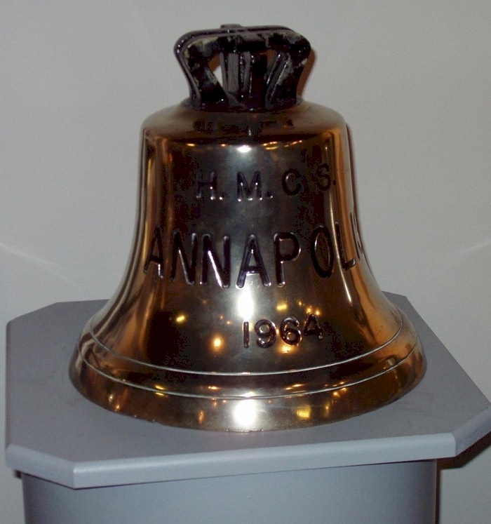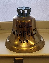 Left to right - The 3 known bells for HMCS ANNAPOLIS 265 are at the Naval Museum of Halifax, the Naval Museum of Manitoba and the CFB ESQUIMALT Naval and Military Museum. There is a possibility of a 4th bell in the town of Annapolis Royal, NS, but this has not been confirmed.