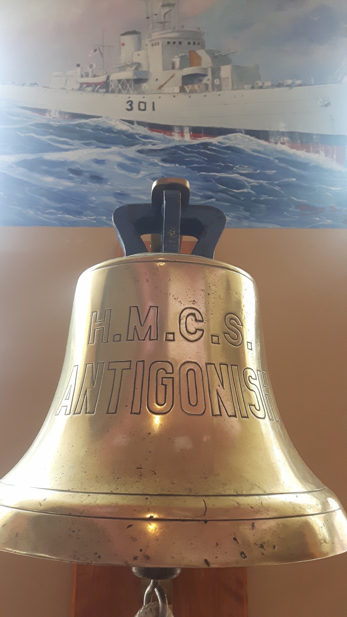 There are 3 known bells for HMCS ANTIGONISH K661 / 301 - Two bells are in the care and custody of the CFB Esquimalt Naval and Military Museum and one is in the care and custody of the C&POs Mess, Juno Towers, CFB Halifax.