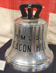 There are two known bells for HMCS Beacon Hill - both are currently on display at the CFB Esquimalt Naval and Military Museum. The bell on the right is on loan to the museum from the City of Victoria.