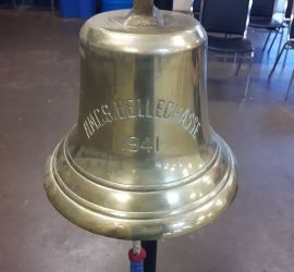 The bell for HMCS BELLECHASSE J170 is on display at NLCC Landymore / RCSCC Admiral Nelles, Brantford, ON Courtesy of Dale Robinson