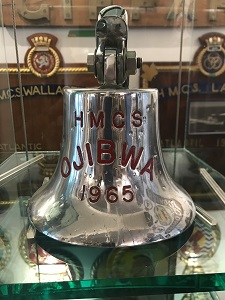 The bell for HMCS OJIBWA is on display at the Naval Museum of Halifax