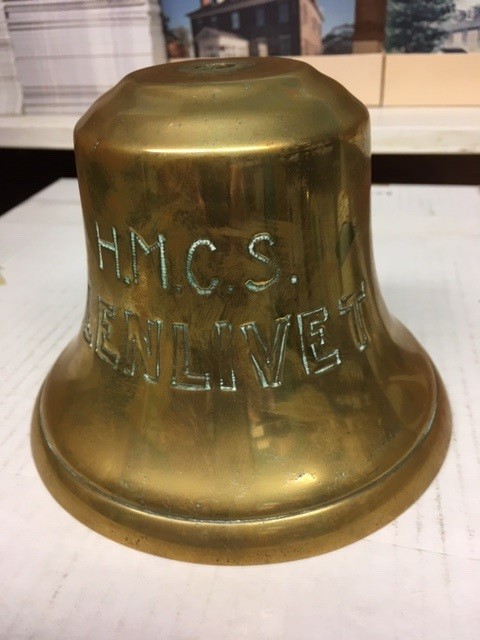 The bell for HMCS GLENLIVET is on display at the Naval Museum of Halifax