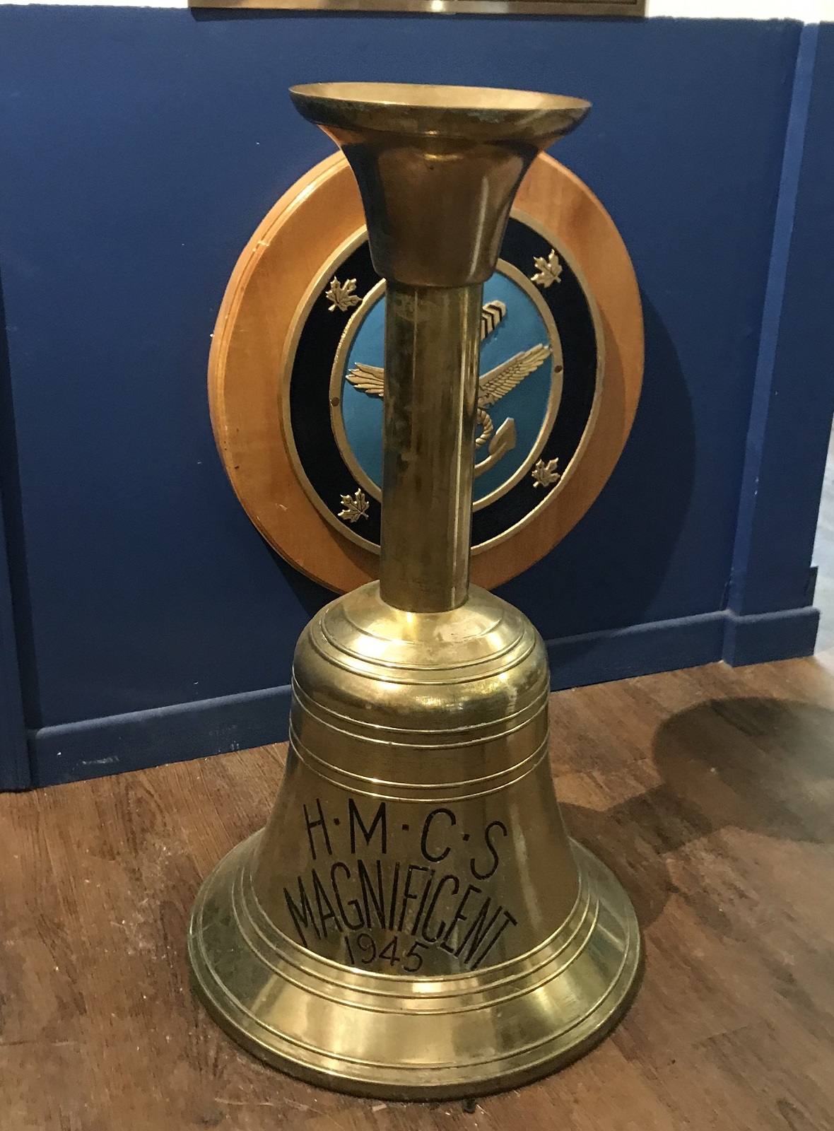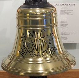 The bell for HMCS MAGNIFICENT is located at the Shearwater Aviation Museum, 12 Wing Shearwater, Shearwater, NS Photo courtesy of John Knudsen
