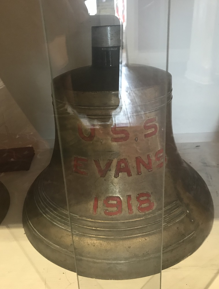 The bell for HMS MANSFIELD G76 is located at the Naval Museum of Halifax, CFB Halifax