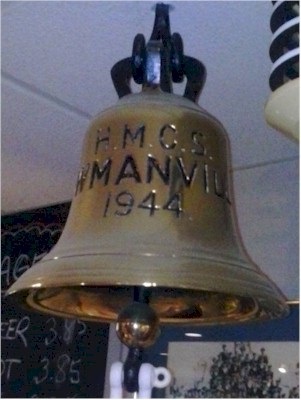 The bell for HMCS BOWMANVILLE K493 is located at the Royal Canadian Legion Branch 178, Bowmanville, ON.