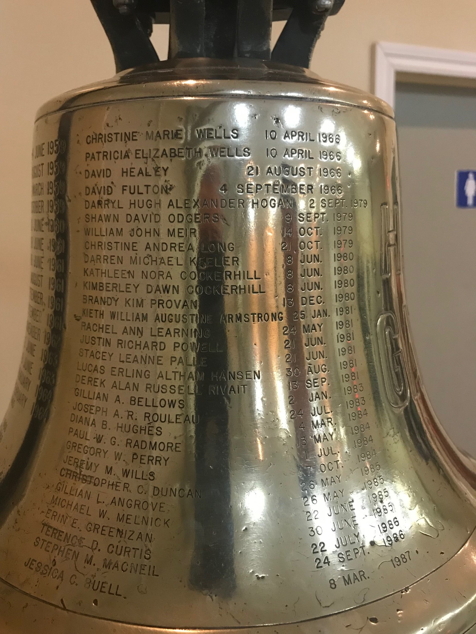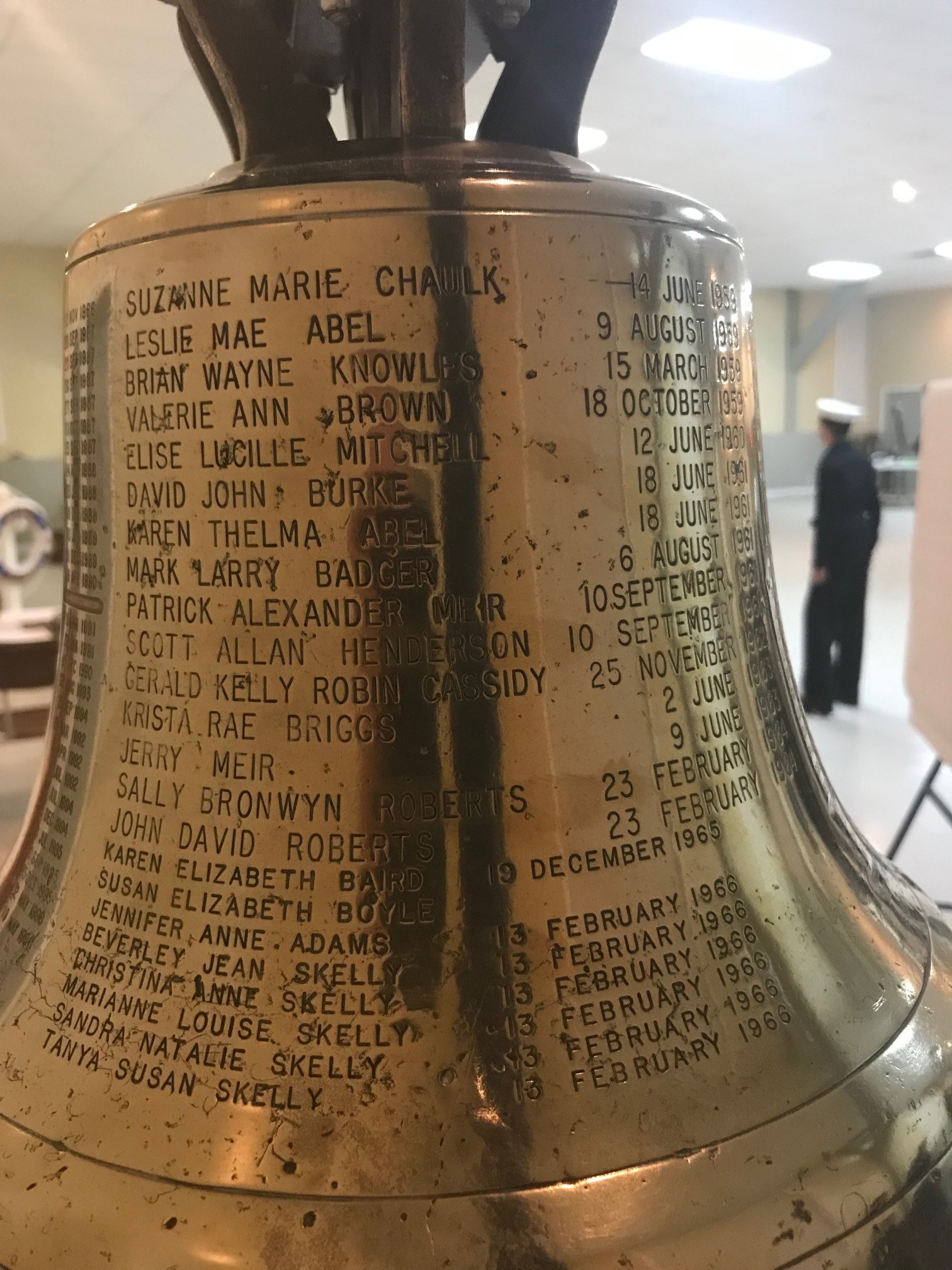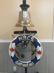 This bell for HMCS GATINEAU 236 is located at the Royal Canadian Legion Branch # 227, Gatineau, Gatineau, QC. Photo courtesy of John Gabel