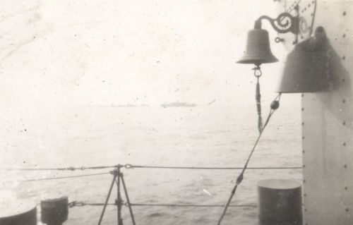 The bell of HMCS QUINTE J166 on the bridge face circa 1941/2 From the collection of Ross Somerville L/Coder, RCNVR