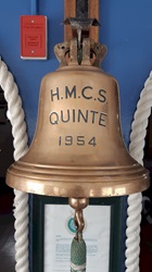 This bell for HMCS QUINTE 149 is located at the CFB Trenton Yacht Club, at CFB Trenton. The location of HMCS QUINTE'S baptismal bell is unknown. If anyone has any information on its location, please send me an EMAIL