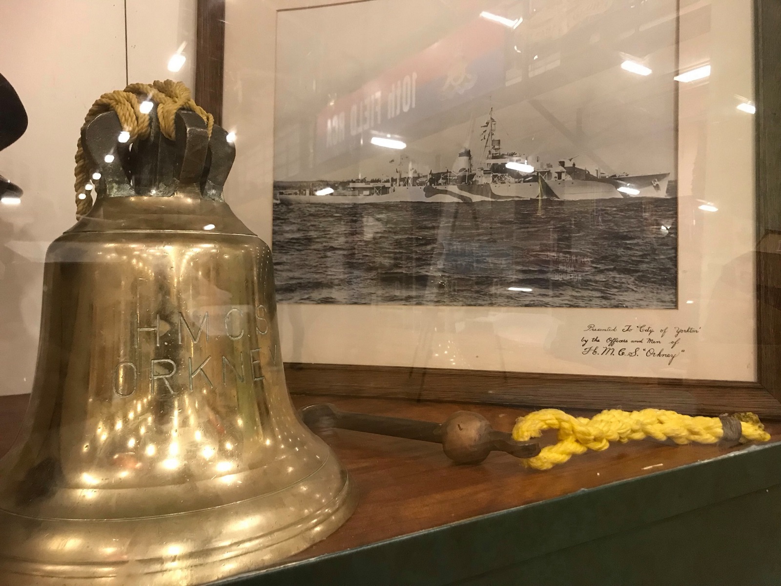 The bell for HMCS ORKNEY K448 is located at the Saskatchewan Military Museum in Regina, SK Photo courtesy of Roger Litwiller