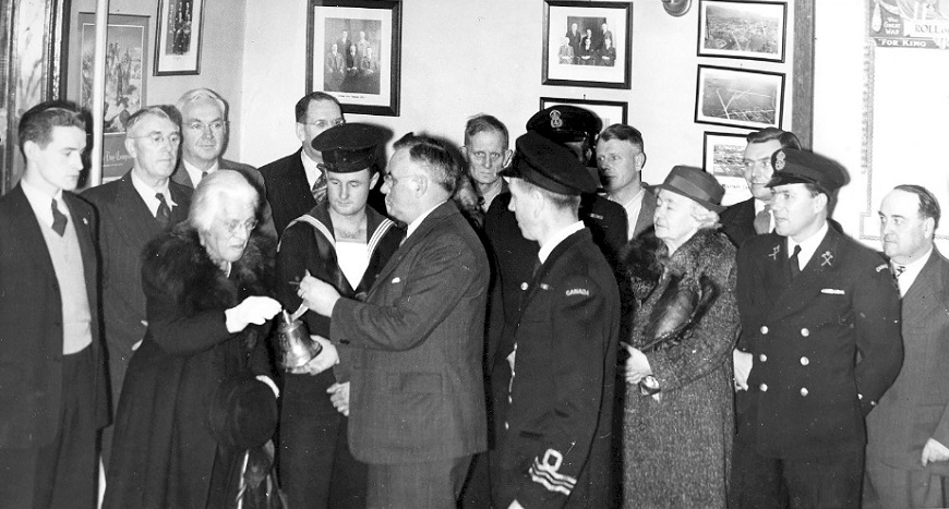 The ship's bell of HMCS KALAMALKA being presented to the City of Vernon, BC