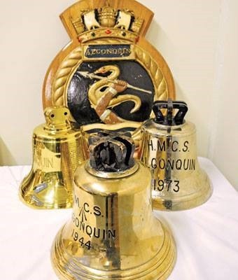 These 3 bells for HMCS ALGONQUIN R17/224 (front bell) and HMCS ALGONQUIN 283 (rear 2 bells) are held at the CFB ESQUIMALT Naval and Military Museum
