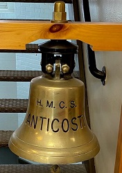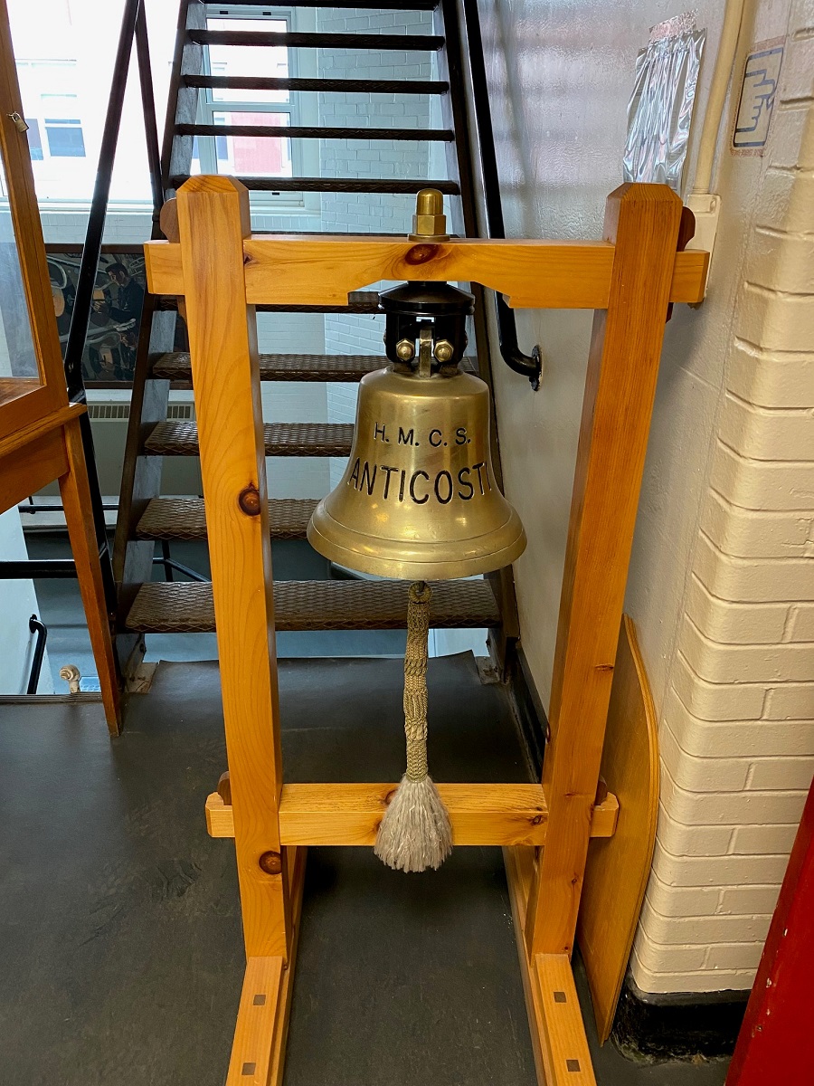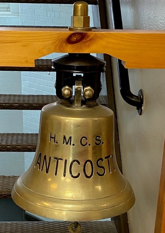 The bell for HMCS ANTICOSTI is located at the Engineering School, CFB Halifax. Photos courtesy of the Naval Museum of Halifax