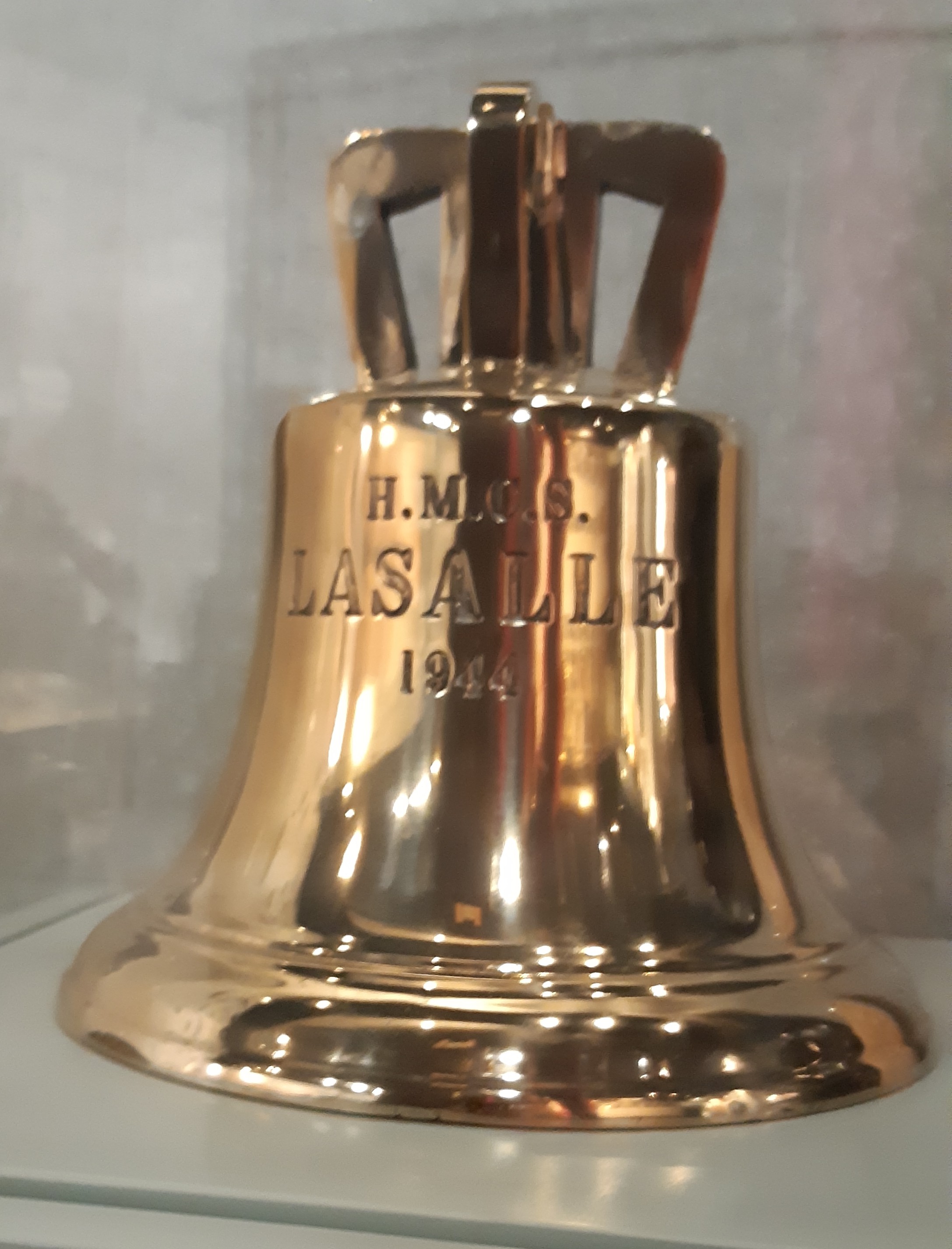The bell for HMCS LASALLE K519 is on display at the Naval Museum of Manitoba (at HMCS CHIPPAWA), Winnipeg, MB