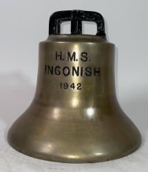HMCS INGONISH was originally built for the RN. On completion she was transferred to the RCN but used the original bell made for HMS INGONISH. In Nov 2025, this bell appeared on the Boston Harbor Auctions website.