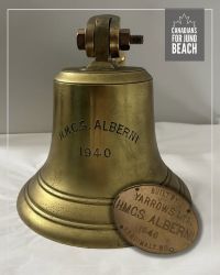 The bell for HMCS ALBERNI is on display at the Juno Beach Centre, 14470 Courseulles-sur-Mer, France.