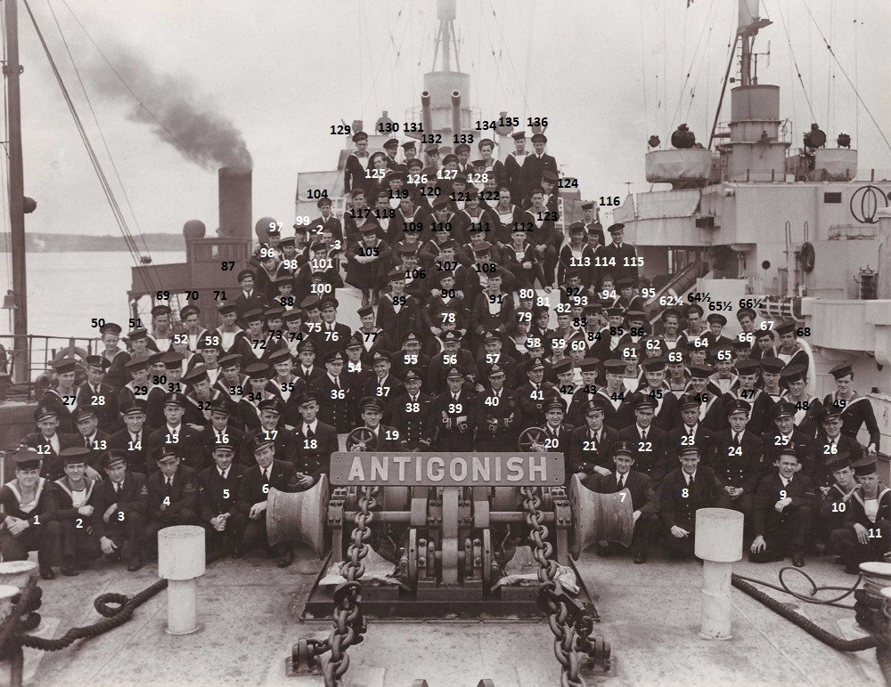 Note: in the upper left group of sailors, due to space, two were numbered -2 and -3. Those two numbers for the purpose of identifying people are 102 and 103.