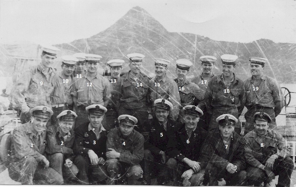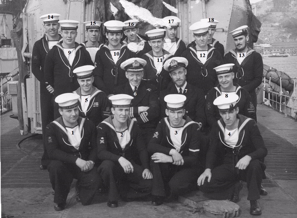(5) Bridges, P2.RP (6) King, D.G., Cdr (11) Jones, Harvey, AB.RP (14) Burck, David, AB.RP (17) Volker, George, AB.RP (18) Yeates, Ron, LS.RP