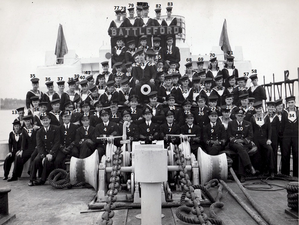 (5) Turnbull, Hugh Hathaway, Lt, RCNVR (22) Nicholson, Walter John, PO, RCNVR (24) Herbert, Norman Arthur Leo, CPO (40) Rawlings, Bill (50) Miller, Lawrence Joseph, AB (56) Bidnock, John (65) Liddiard, John Wilson