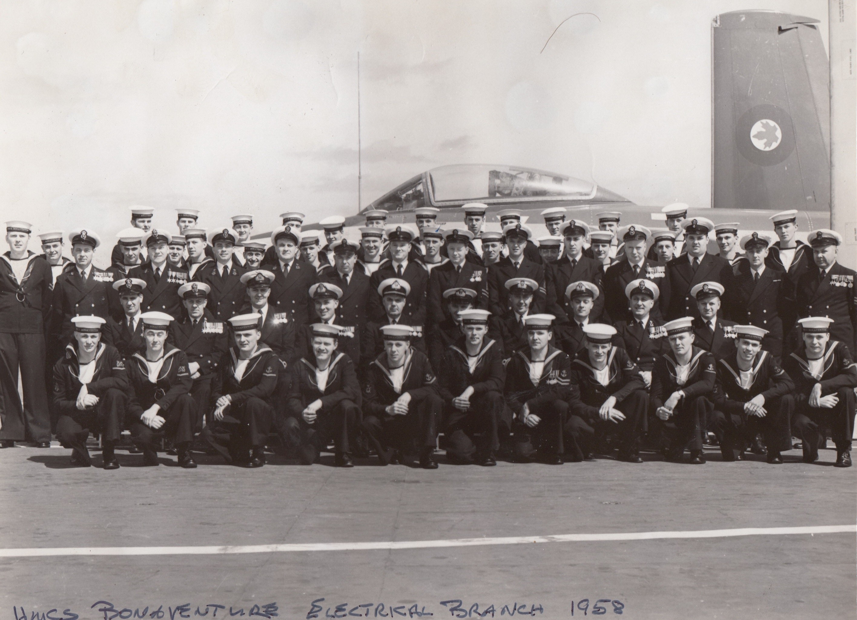 HMCS BONAVENTURE Electrical Branch - 1958 Click on the above photo to view a larger image