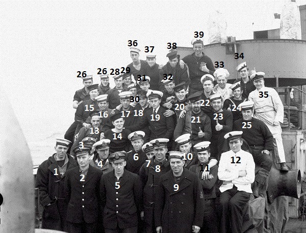 (8) Harding, Walter L., PO (10) Mowat, John Franklin (11) Dennis, John C. (Jack) (12) Brychka, Mitch (17) Branch, Harold George (20) Moyle, Sydney Gordon (26) Richardson, Walter (28) Hynes, Bert, Sto