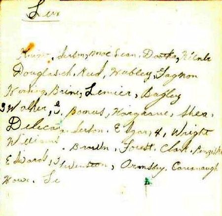 (6) Ormsby, Edward Oswald (10) Marsh, Arthur Thomas (15) MacLachlan, James, Sig (17) Clark, William (Bill) (21) Peckham, Edward, SD (30) Acorn, Fred (41) Pridham, Ernest Robert