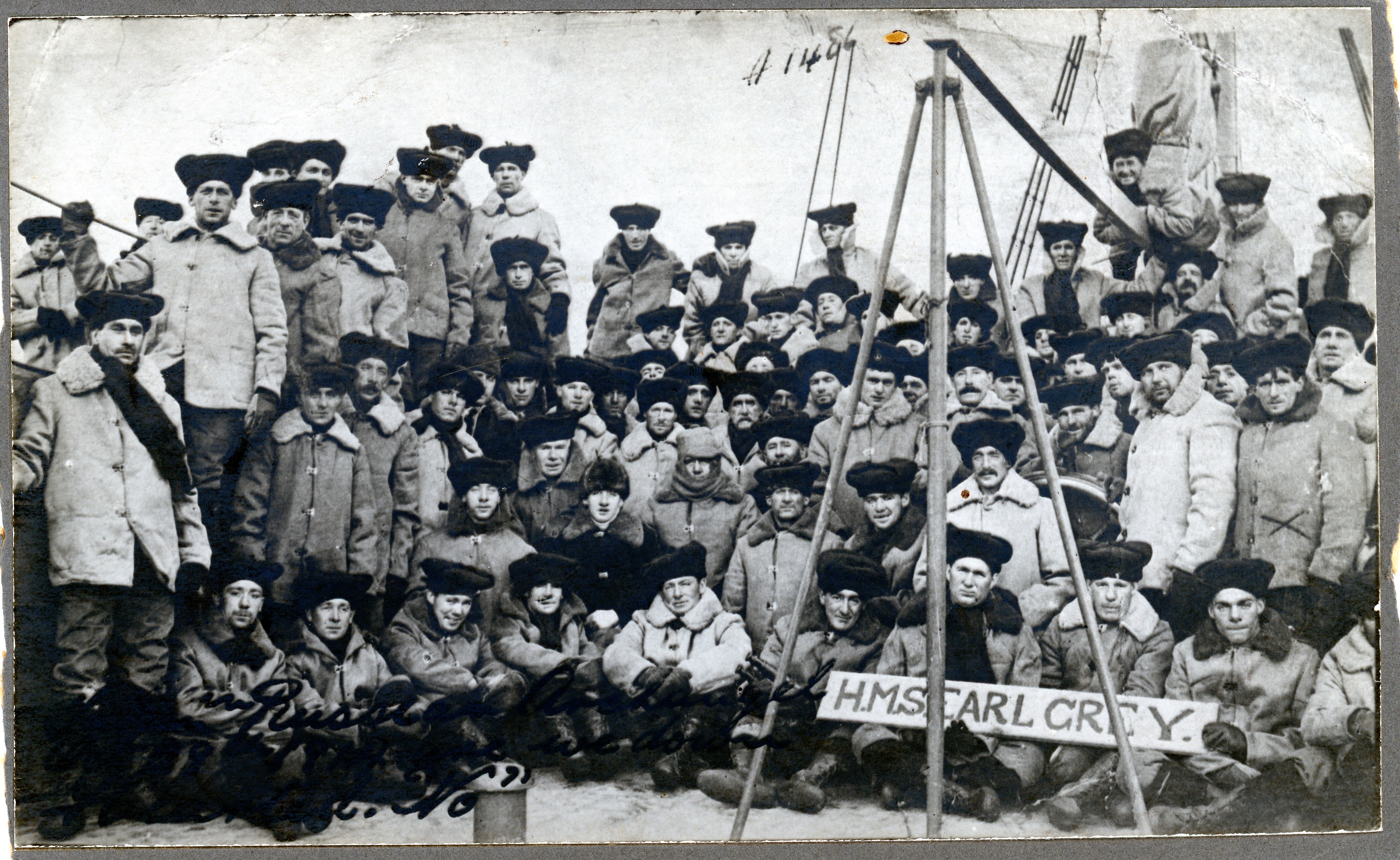 HMCS EARL GREY Taken in Russia, Archangel, Oct 29th, 1914 "Are we downhearted. No" Click on the above photo of view a larger image