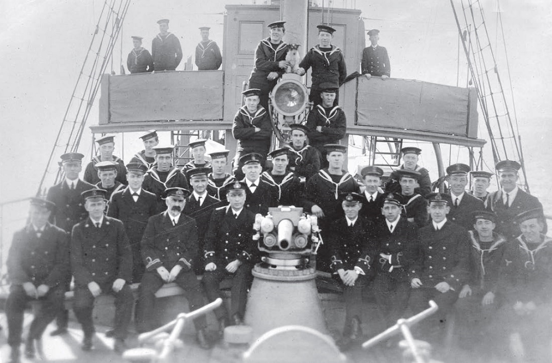 This 1918 photograph shows HMCS Galiano's ship's company posing around their ship's main armament, a 6-pounder gun. Originally ordered as a patrol ship for the Fisheries Protection Service, the Galiano operated in British Columbia waters before being requisitioned for service with the Royal Canadian Navy in September 1917. The ship, its entire crew, and one civilian passenger were lost in a heavy storm during the early hours of 30 October 1918, less than two weeks before the end of the First World War.