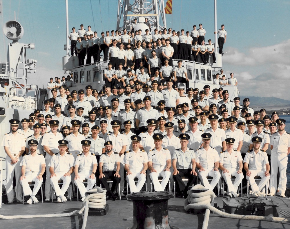 Front Row: Lt(N) Pirquet (EO), LT(N) Wright (SyO), LCdr McKenzie (WO), Cdr Murphy (CO), LCdr Craven (XO), LCdr Bowering (CSE), LT(N) Shead (Ops O), LT(N) Archbold (Deck O)