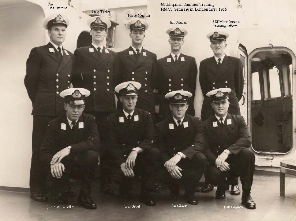 Note: Andy Fulton went on to Flag Rank and command of the Navy. Houliston, Braham, Carruthers, Cale and Spence were all graduates of the same RMC Class (1965)