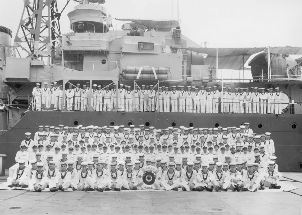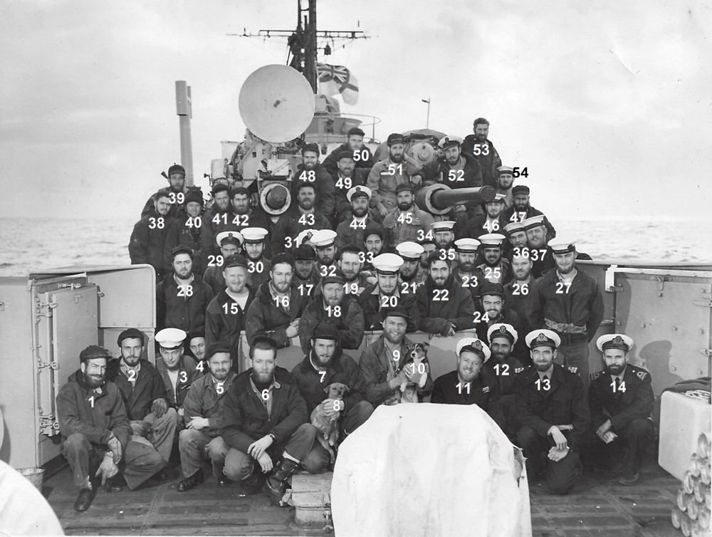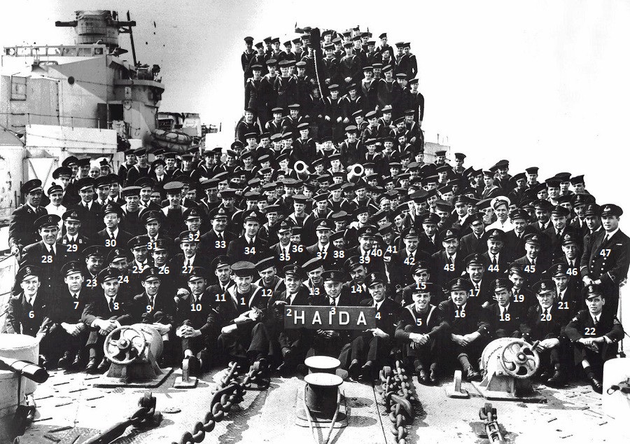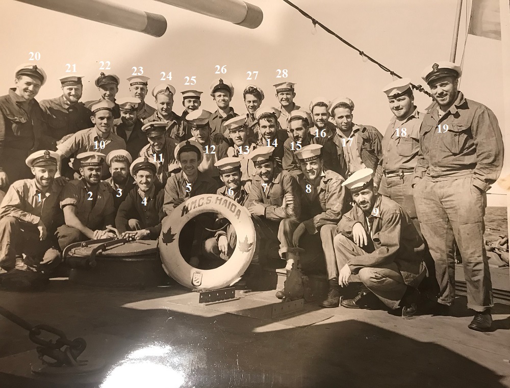 (18) Russell, Angus, CPO (26) Lipton, John Francis, CPO // Culver, Melvin Arnold (Bob) (directly behind #37 Cdr Harry DeWolf, CO)