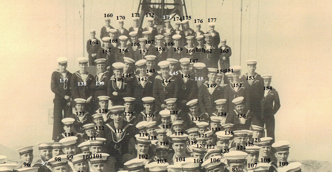 (0) Ship's Mascot (5) Nieuwstad, Peter Cornelius, LCdr, RCN (20) Edwards, Ernest George (Ernie), (60) Edwards, Henry Thomas (Harry), PO