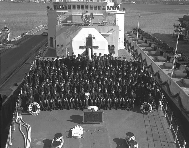(1) Tancock, Ted, MS  (2) Baird, John, PO2 (OM)  (3) Kverme, Ernie, CPO2 (ER)  (4) Harding, Doug, CPO2 (AMR)  (5) Johnson. Ron, SLt (Baby Engineering Officer)  (6) Murchie, LCdr?, (Engineering Officer)  (8) Sherlock, Derek, CPO1, CERA  (8) Bonnett, Bob, CPO2, Reg Chief  (9) Dorrington, Bob, PO1 (OM)  (10) Hickmont, John, PO1 (AMR)  (11) Mathieu, Omer, PO2 (ER)
