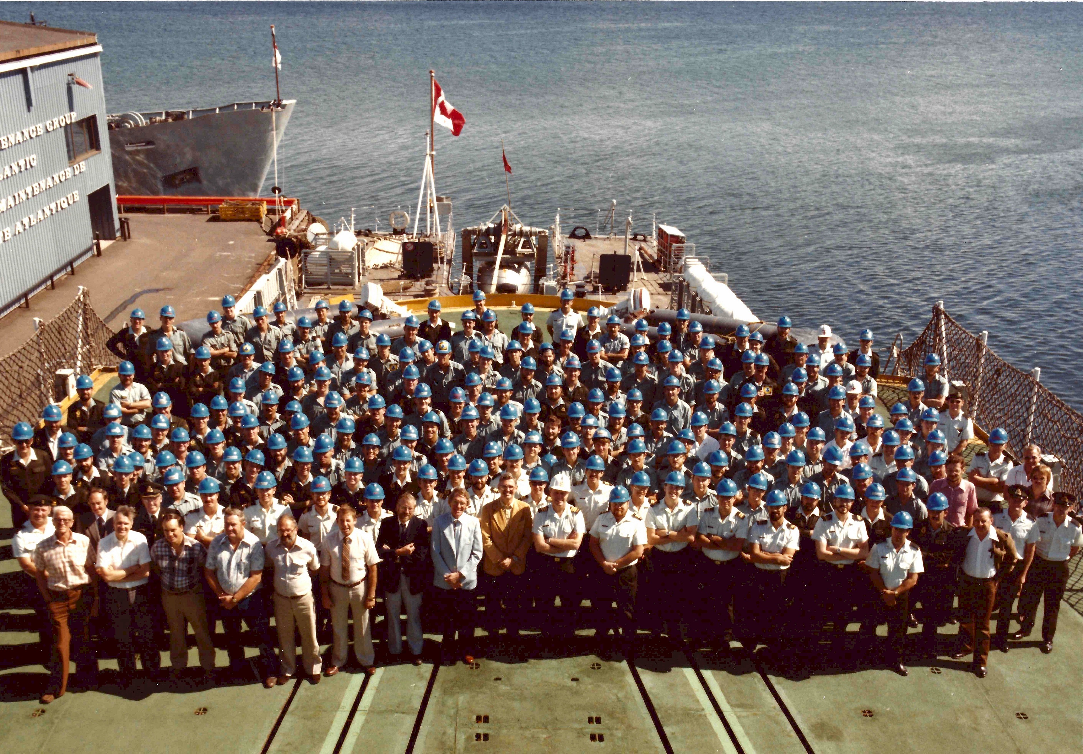 HMCS IROQUOIS 280 Crew of HMCS Iroquois and Dockyard Support Team Photo taken after shock trials - Sep 1980 Click on the above photo to view a larger image