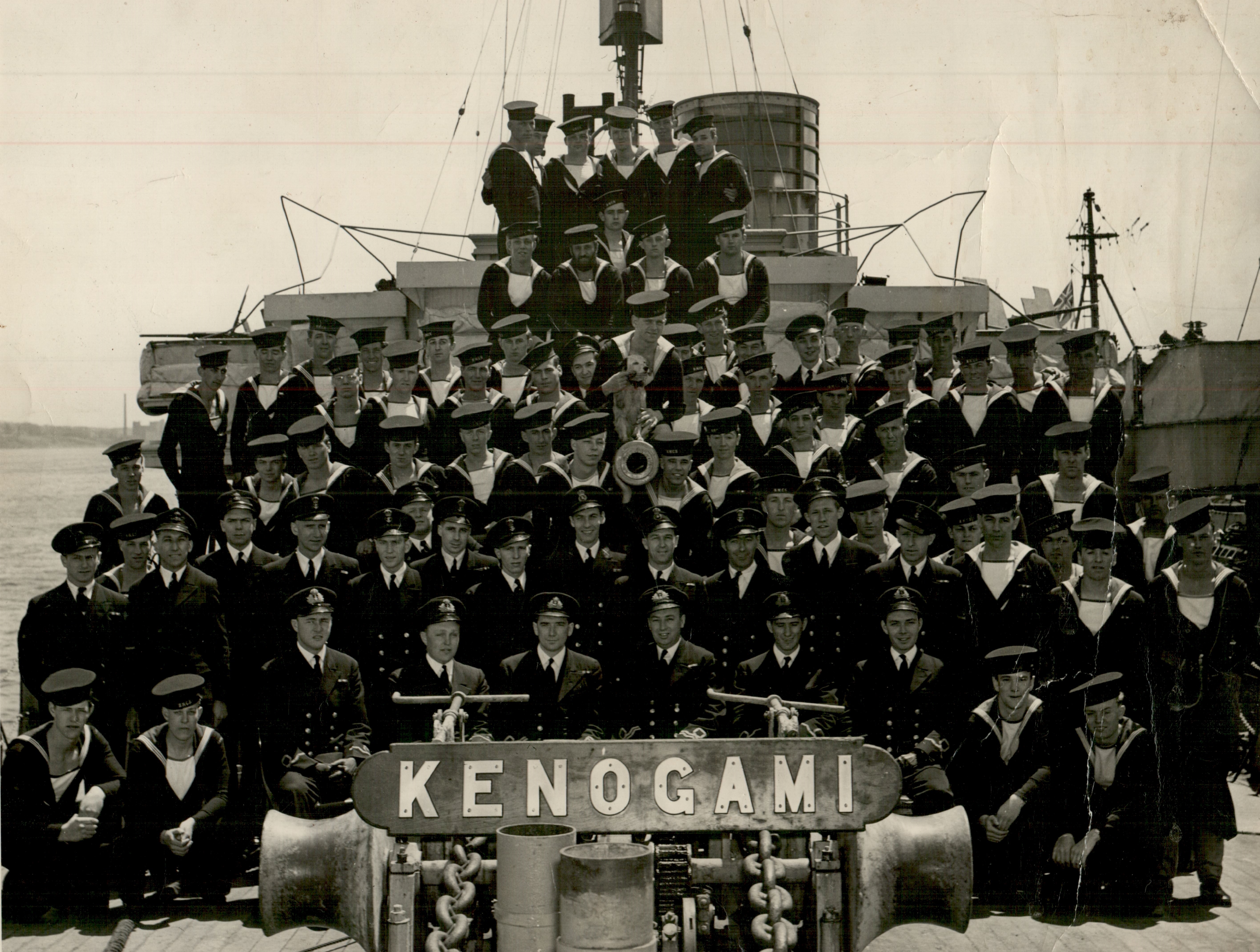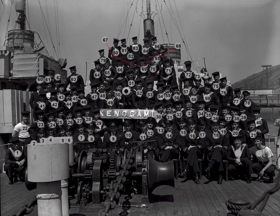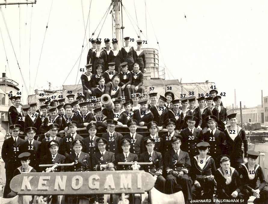 (8) McKenzie, Ralph George, Lt, RCNVR (11) Lobb, Cecil N. (24) Haigh, James Dawson, CPO ERA 3c (38) Duff, William Patrick, RCNVR (50) Ship's Mascot - Teddy (64) Robert, Maurice