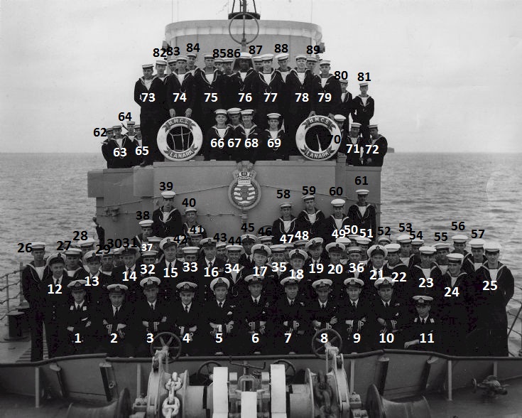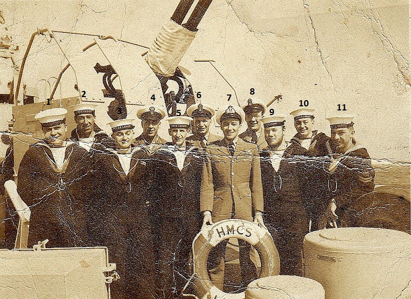 (11) Allison, Shannon, LS (22) Fenn, Lt (23) Shaw, Colin, LCdr, CO (39) Curley, Steve, OS.SN1 (43) Jones, Brithen, P2ER Stoker (45) Robertson, William, P2ERA (6) Horn, Arthur A., ER (98) Simpson, P1ERA (99) Slaven, Jock, P1ERA (100) Kramer, C1ERA (101) Leclair, Dick, P1ERA (103) Kinch, John F., P1SW