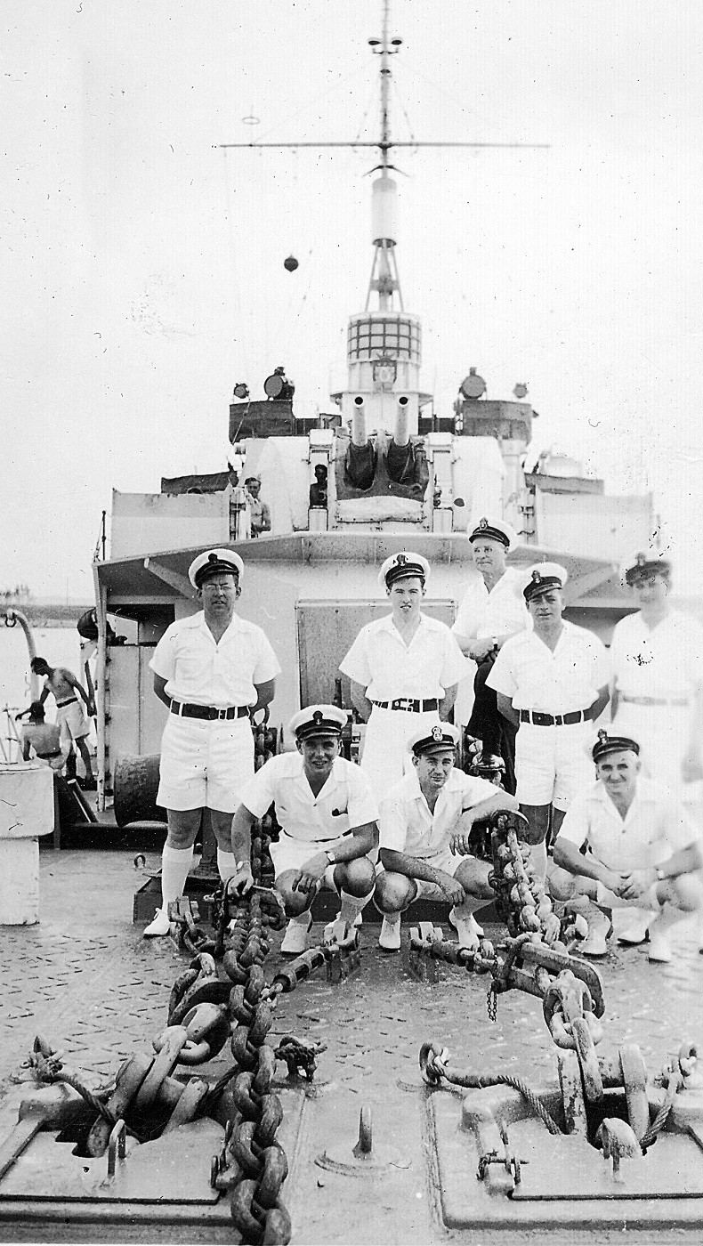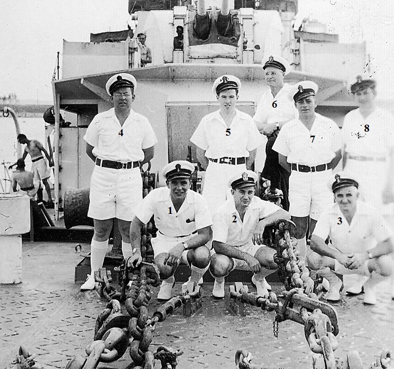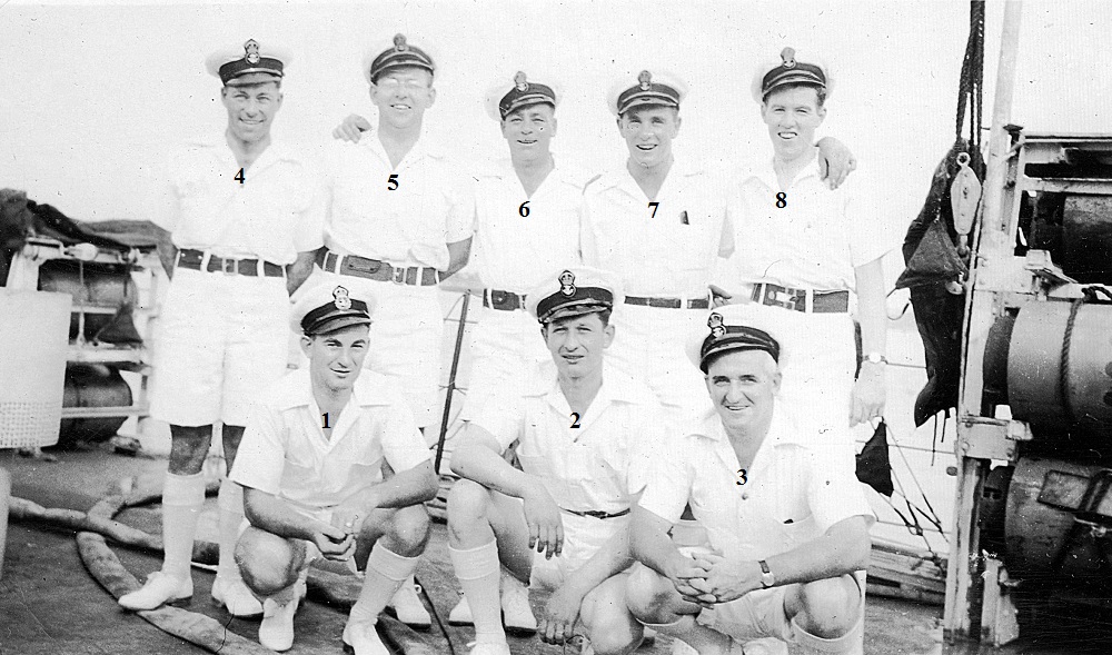 (1) Doyle, Richard (Dick), PO (3) Throburn, John (Jack), CPO, Cox'n (7) Anderson, Alex, PO, Yeoman of Signals (29) Lake, Merton, SLt (32) Hayes, Edwin Ernest (43) Clarke, Kenneth, Stoker (49) Miller, William P. (Bill), Stoker (54) Gustafson, Thomas Gunnar (56) Honsberger, John Alfred, OS (75) Haggis, George, AB (97) Drew, Sydney George (116) Graham, Maxwell