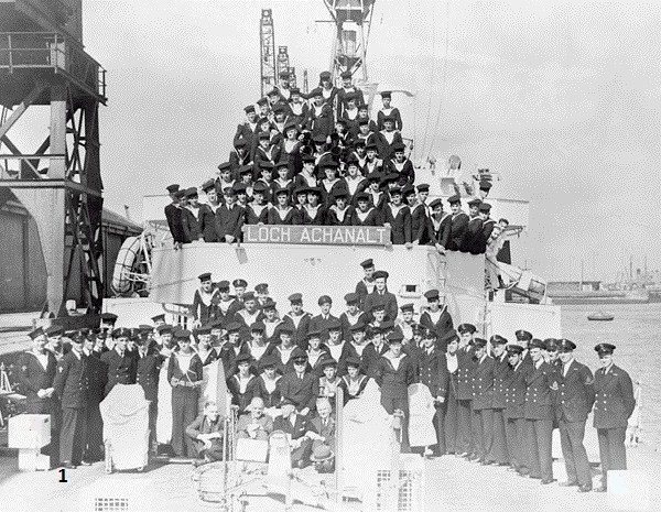 The Right Honourable A.V. Alexander (centre of front row), First Lord of the Admiralty, and the Ship's Company, HMCS LOCH ACHANALT, Britain, September 1944 Source: Lt Herbert J. Nott / Canada. Dept. of National Defence / Library and Archives Canada / PA-114644