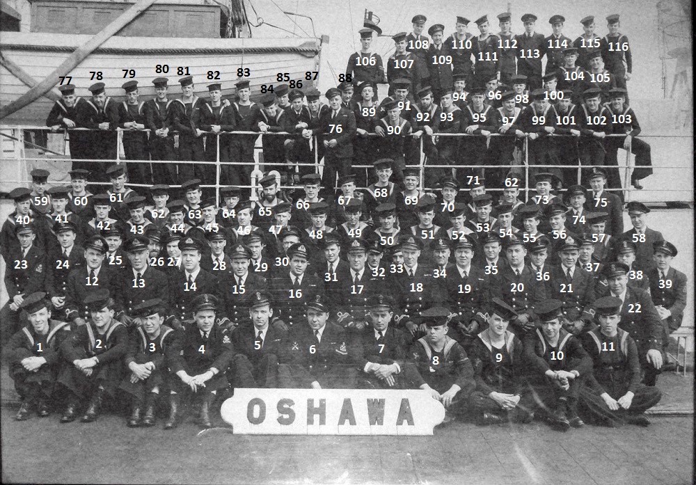 (1) Brown, Frederick George William (6) Burns, Robert, PO (28) Belsey, Edward Robert (Ted), PO (31) Nylund, Fred, PO (48) Waddington, Malcolm Ronald, Stoker (49) Grant, Victor James (73) Kemp, John (Ted) (75) Stewardson, Donald Ray (82) Davidge, George L. (91) Fraser, Harold Douglas, Sto 1c