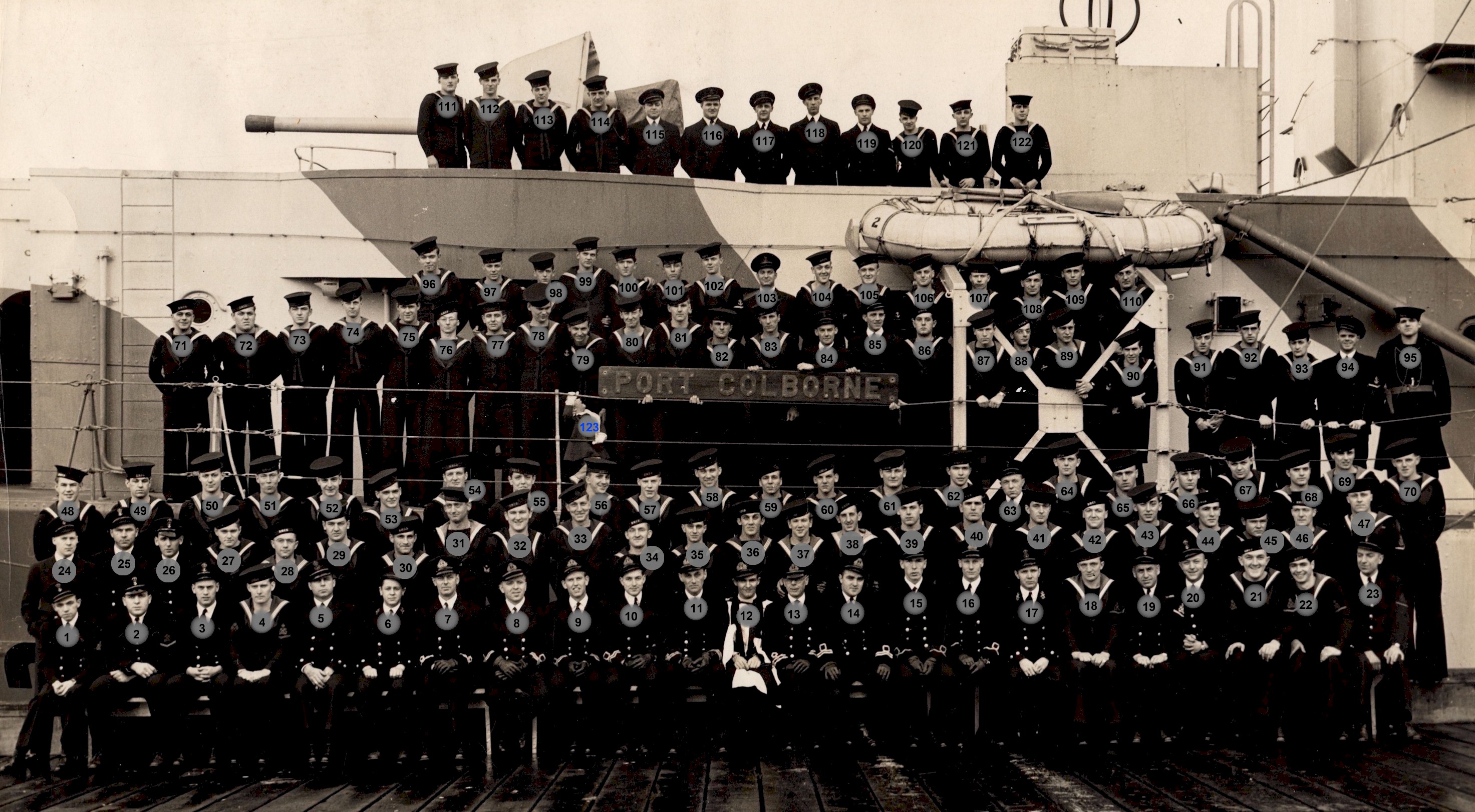 (36) Graham, Bernard John (46) Anderson, George (66) Massé, Edouard (Eddy) (67) Calfat, Gregoire (Gerry) (72) Mosley, Leo (76) Colgan, Harold, Coder (88) Bodnar, Nick J., Stoker 1c (121) Gould, James Alan From the collection of Harold Colgan, Coder, RCN Courtesy of Randall Colgan