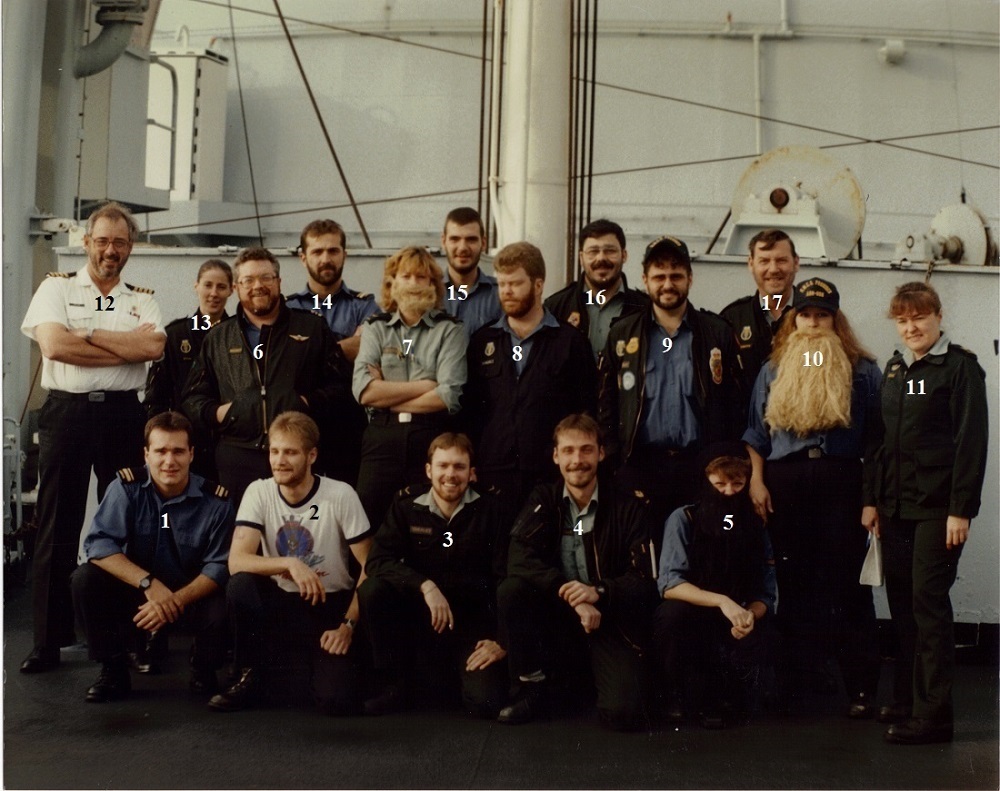 Back Row (12) Scotten, Capt(N) (13) Stohl, LS (14) Ciaradella, SLt (15) Frose, OS (16) McCluskey, MS (17) Smith, CPO2