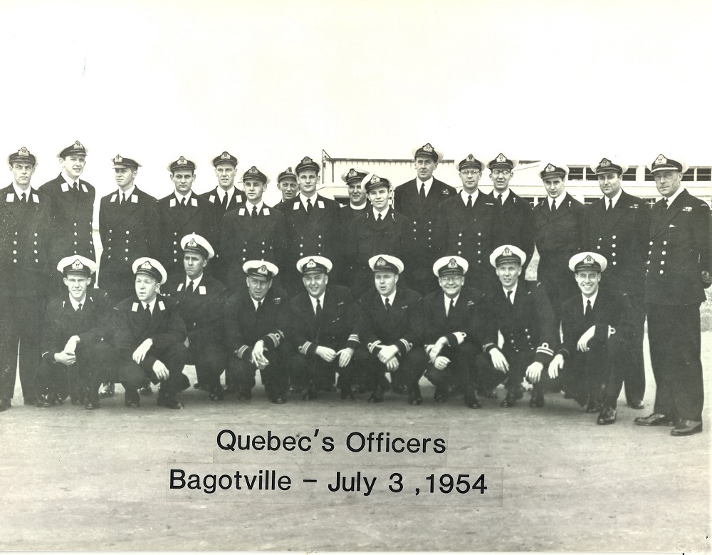 Some of HMCS QUEBEC'S officers visiting Bogotville, Quebec, 03 Jul 1954 Click on the above photo to view a larger image