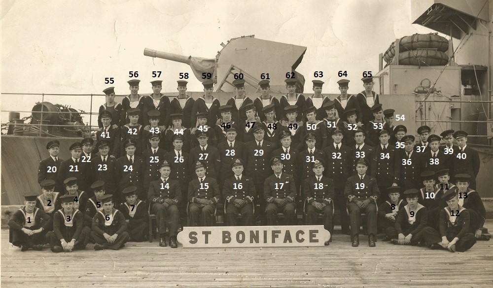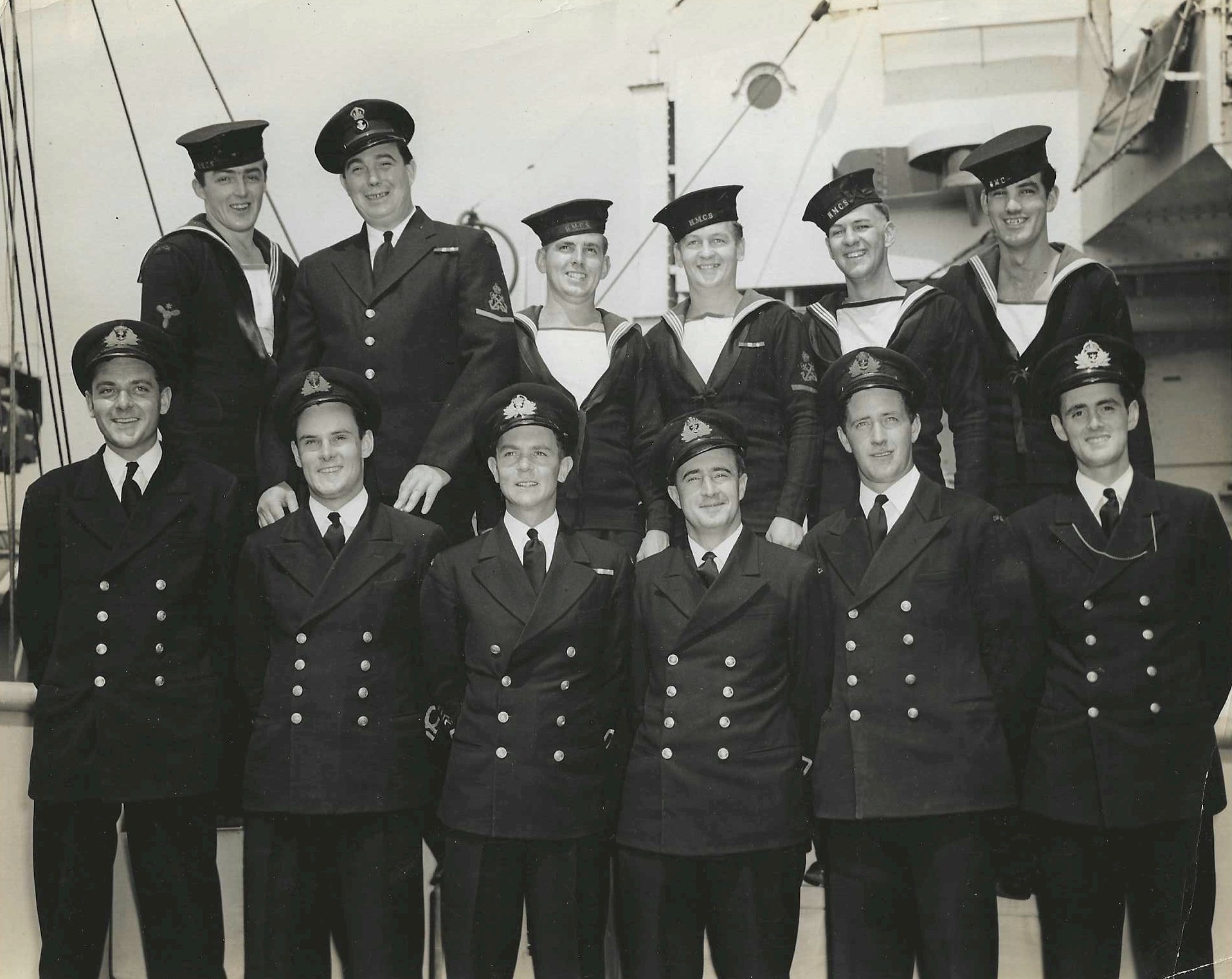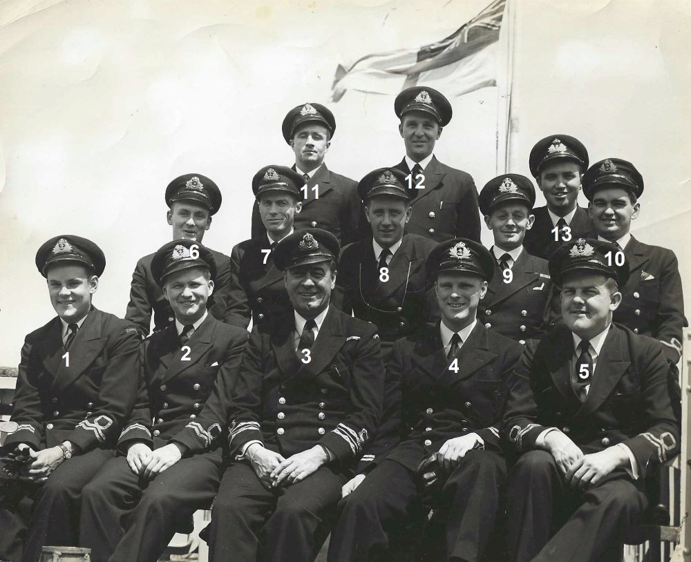 (11) Britnell, Carl B., SLt (E)  (12) Dickson, Robert H. (Bob), Lt, RCNVR  (13) Hampson, Lawrence G. (Larry), Lt, RCNVR