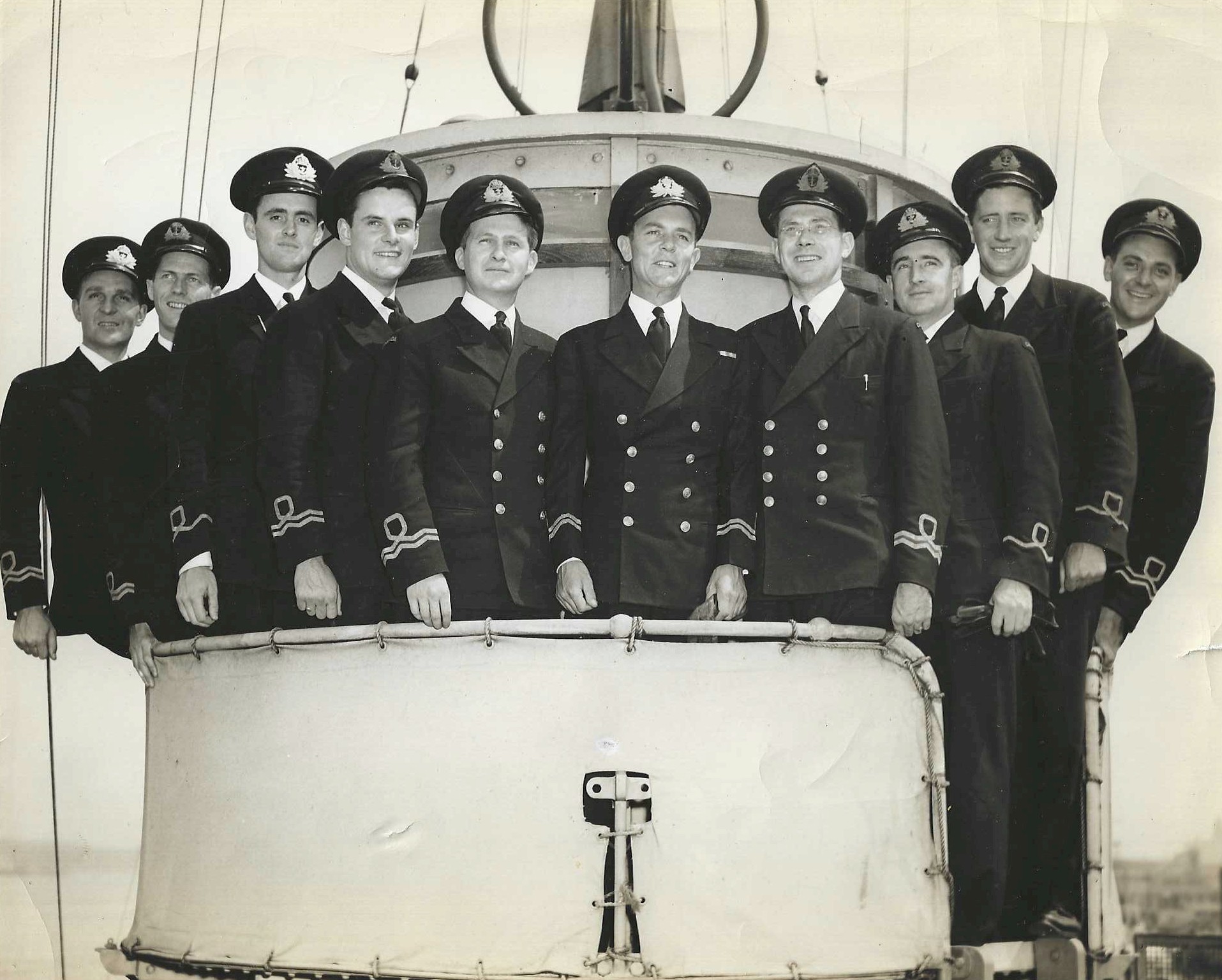(1) Hugh B. Young, Lt, RCNVR  (2) Al McDougall, Lt, RCNVR  (3) Hodgkinson, John James, LCdr, RCNR, CO (4) Barrett-Leonard, Walter, Lt, RCNVR  (5) Angus, Ricky, Lt, RCNVR