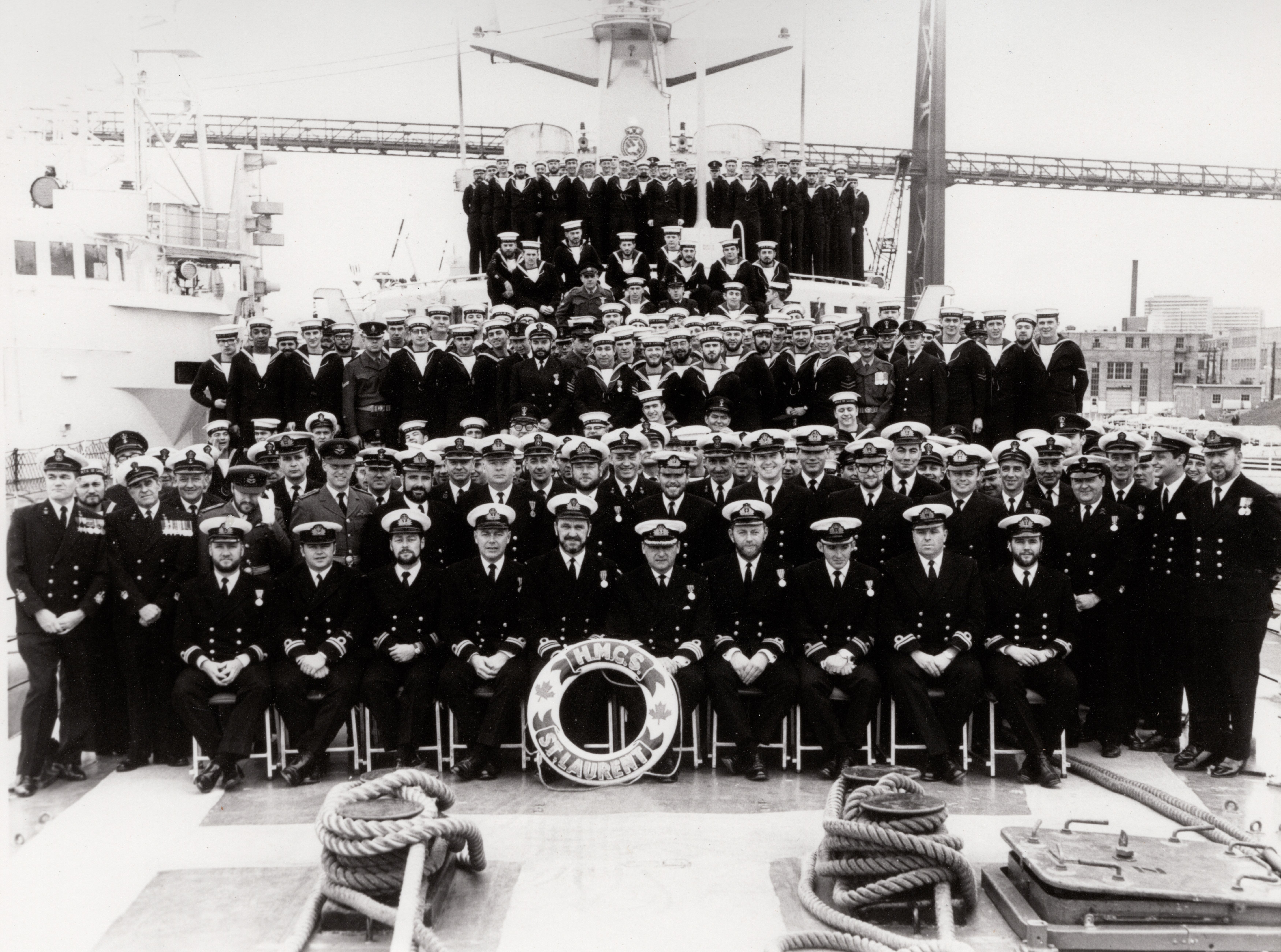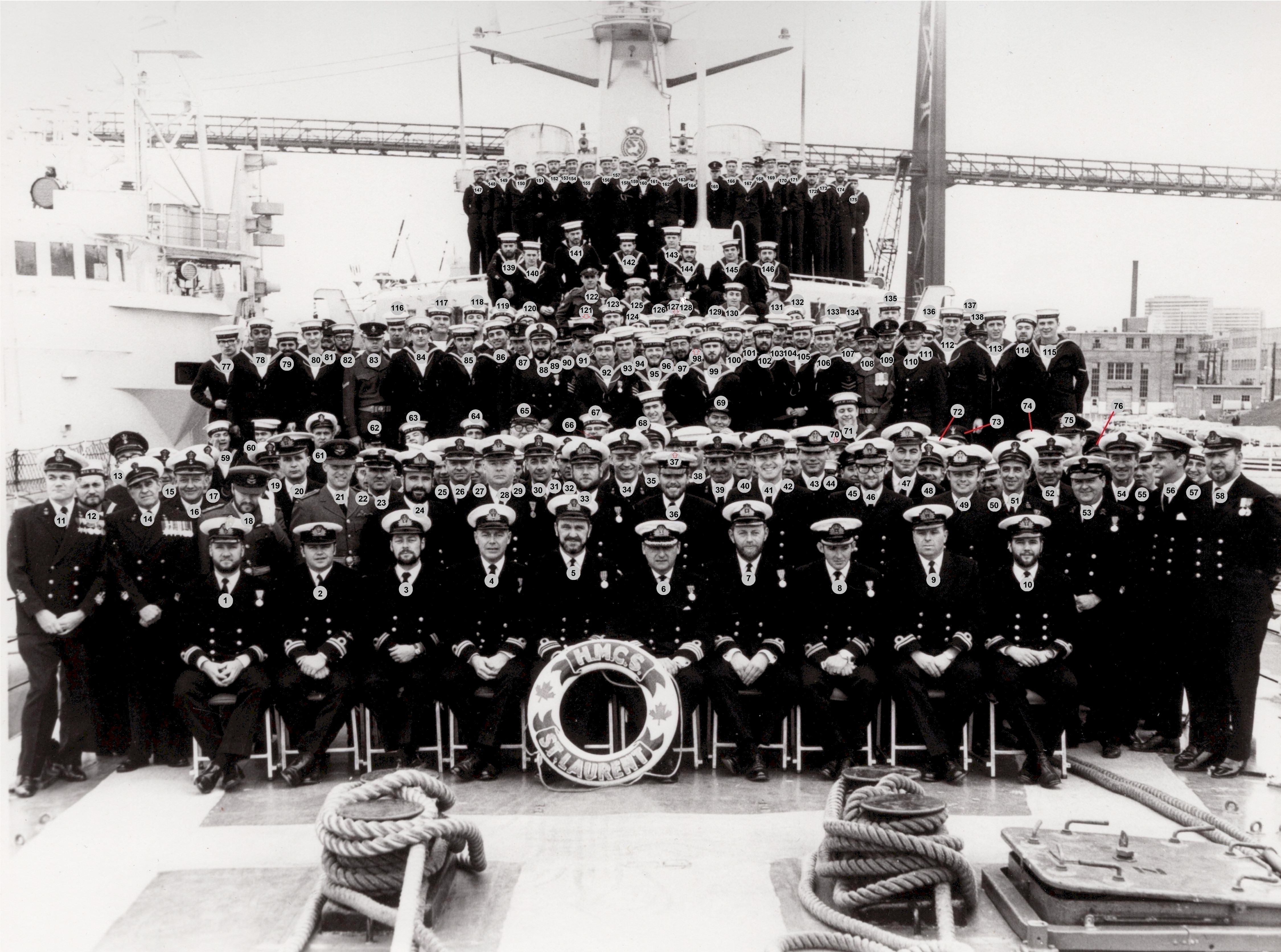 HMCS ST LAURENT 205 May 1970 Click on the above photo to view a larger image Click here to view the photo with the crew numbered for identification purposes