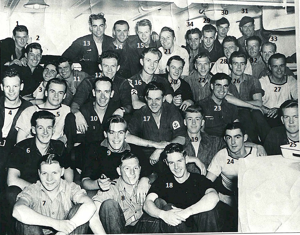 (1) Wrench, Walter (2) Oake, Raymond (3) Mc Carthy, Dan (4) McPherson (5) Hyde (6) Schlalter, Al (7) O'Brien (8) Pollish, George (9) Cain, Glen (10) Shaver, Bob (11) Mills, Scully (12) Almas, Gordon (13) McDonald, Ken (14) Bakos, George (15) Lakness, Ossie (16) Danielson (17) Mason, Harry (18) Cornwall, Joe (19) Blackwell, Eugene "Blackie" (20) Cameron (21) Turcan (22) Case, Aurther (23) Robinson, Percy (24) Brown, Toby (25) Beatty, Edward (26) Lee, Bob (27) McNeil (28) Chepelsky, Michael (29) Pierce, Bill (30) Binnington, Charles Raymond (Ray) (31) Borals, Steve (32) McDonald, Hugh (33) Hartshorn (34) Gauthier, Jim