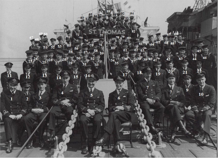 (6) Denny, Leslie, LCdr, RCNR, CO  (10) Morrison, John Ross, Lt, RCNVR  (27) Preston, Sagar Harry  (82) Ferguson, James Howard  (88) Somerville, Ross Alfred