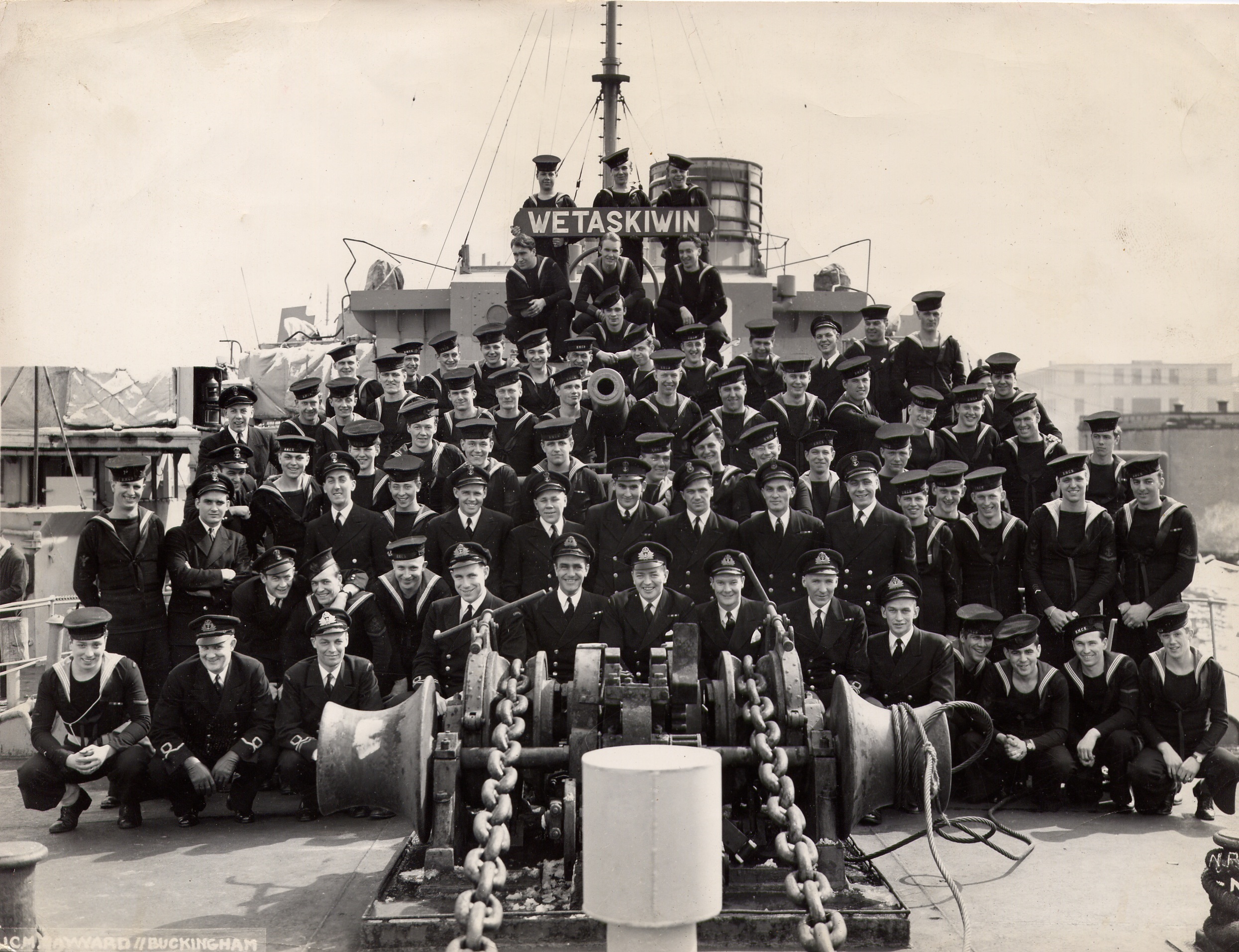 HMCS WETASKIWIN K175 Photo taken in Halifax after March 1944 when HMCS WETASKIWIN returned from refit in Galveston, Texas. Click on the above photo to view a larger image
