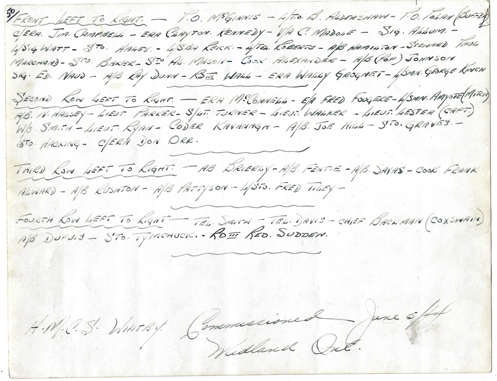HMCS WHITBY K346 Commissioning Crew - 05 Jun 1944 Midland, Ontario Click on the above photo to view it without numbers