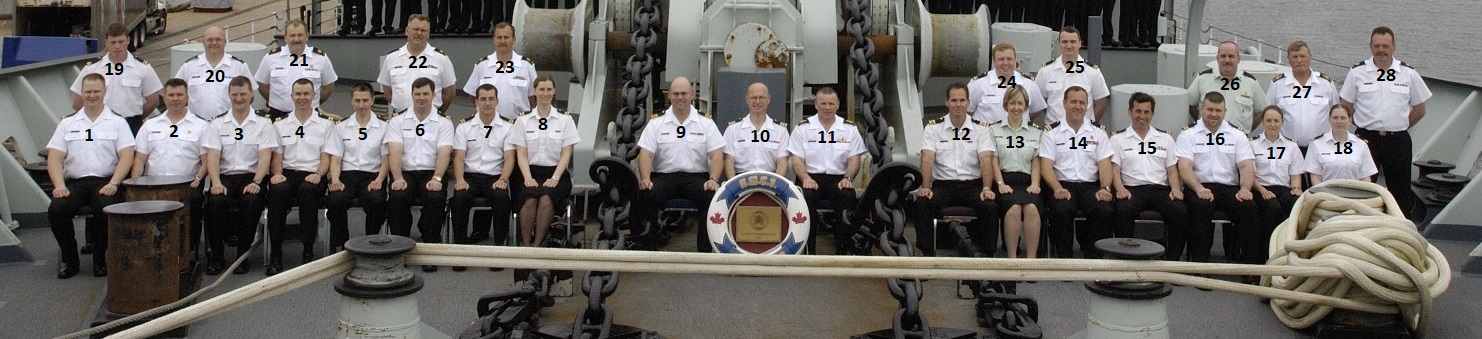 (16) Williamson, Robert, AB. ET (from Spanish, ON) (15) Todd, Rod, AB.HT (from Burnaby, BC) (22) Gowenlock, Frank, CPO (79) Crocker, Albert W., P2BN (102) Mundon, Carl, LS.ET (from Cambelford, ON)