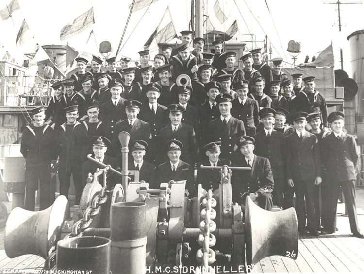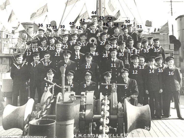 Front: Griffiths, George Humphrey, Lieutenant, RCN, C.O. - 4th from left 3rd Row: Bernard (Bunny) Brewster - 1st on left